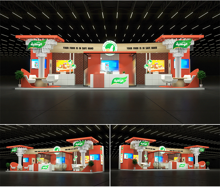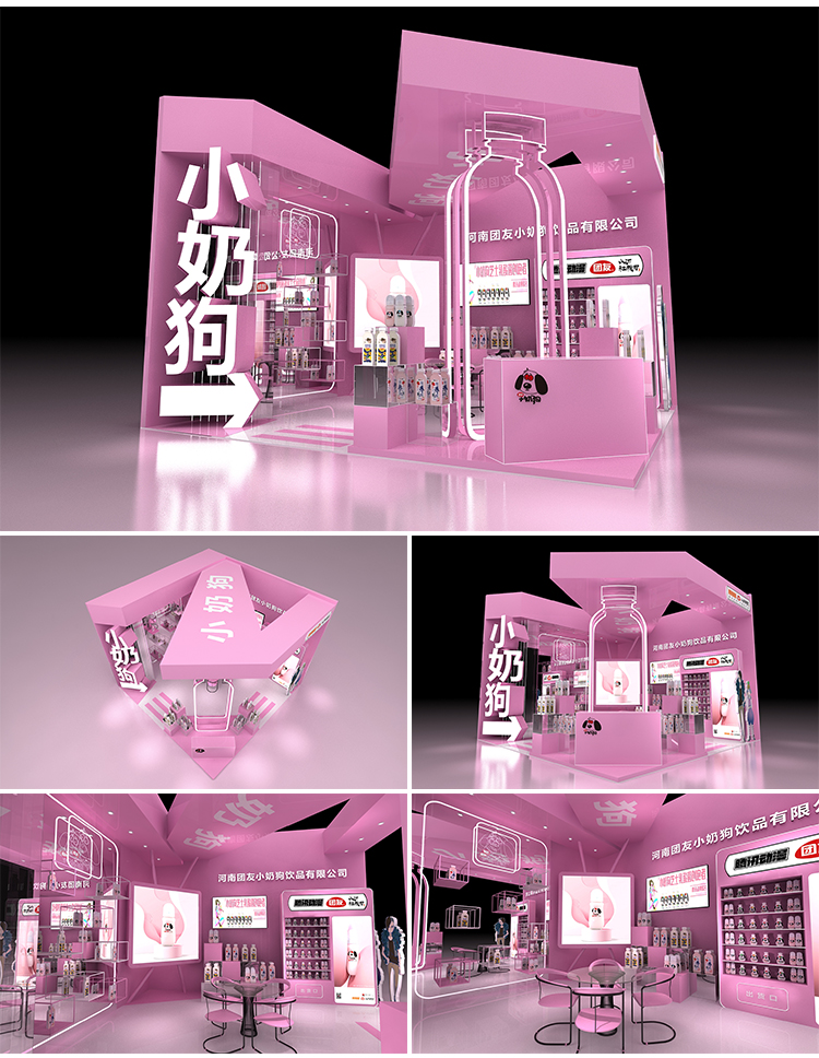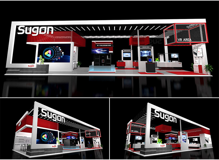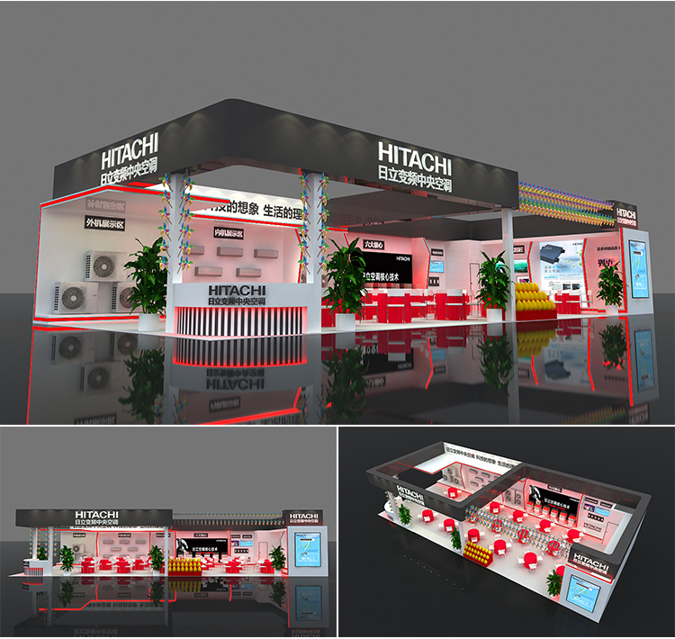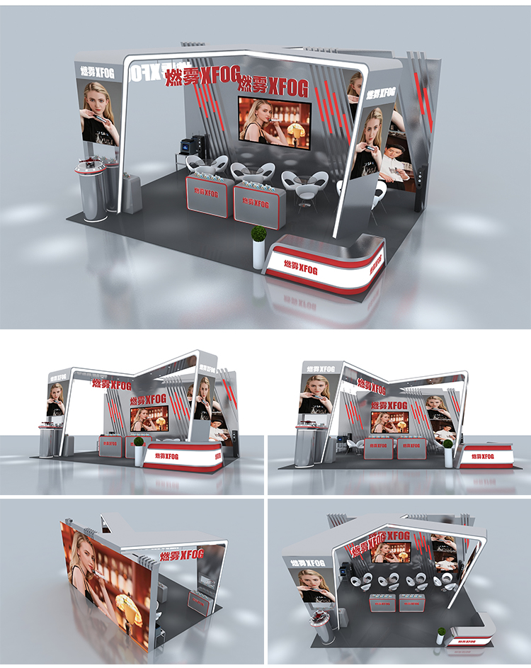 -> 展会展位3d效果图设计企业科技展览商场活动展台厅cad施工图制作