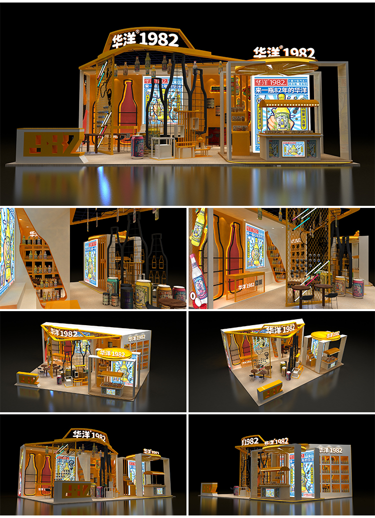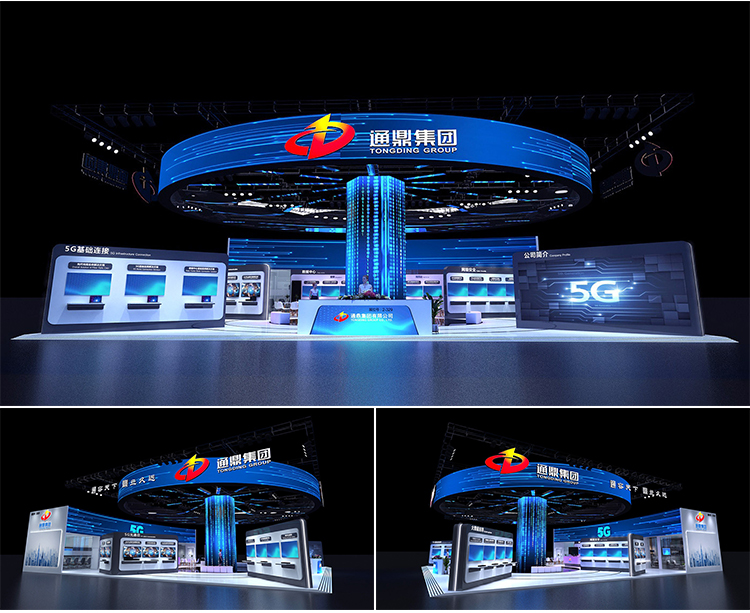 展会展位3d效果图设计企业科技展览商场活动展台厅cad施工图制作